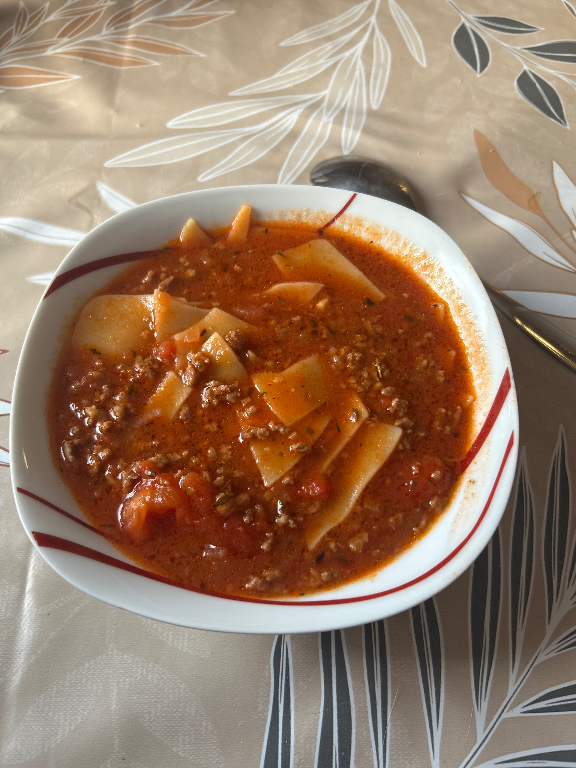 Tänään syödään lasagnekeittoa. En ole eläissäni mokomaa tehnyt mutta ei tuo pirkan ohje maistu ainakaan mitenkään kauhean ihmeelliseltä. Ihan hyvää mut kaipaisi enemmän mausteita. Kun teen jotain ruokaa ekaa kertaa niin teen tarkasti ohjeen mukaan niin tiedän sit miten siitä saa oman maun mukaisen seuraavalla kerralla.