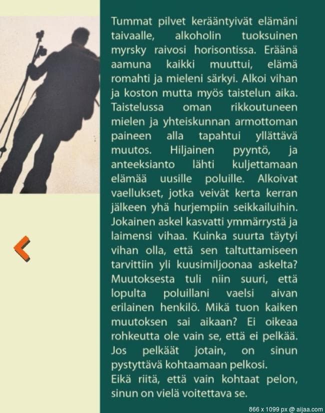 Kiitos @Putkis_0132. Itsekin löysin kirjasi ja sen kuvaukset googlettelemalla, kunhan ensin muistin sen vaihtoehdon. Kaikkea hyvää sinulle ja poluillesi! ![]()