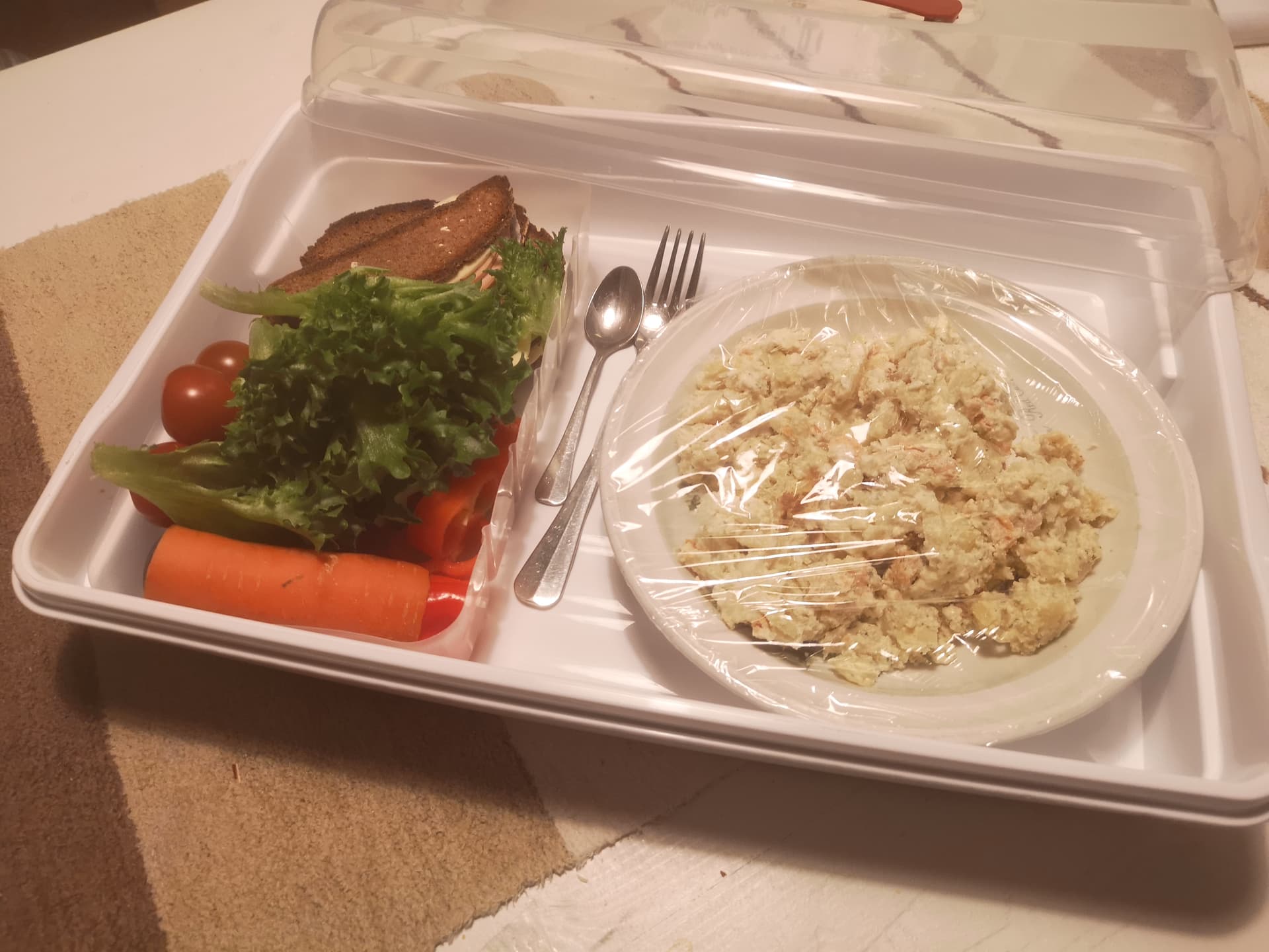 Saavumme naisen kotiin. Saattelen hänet kasseineen kotinsa suojiin.