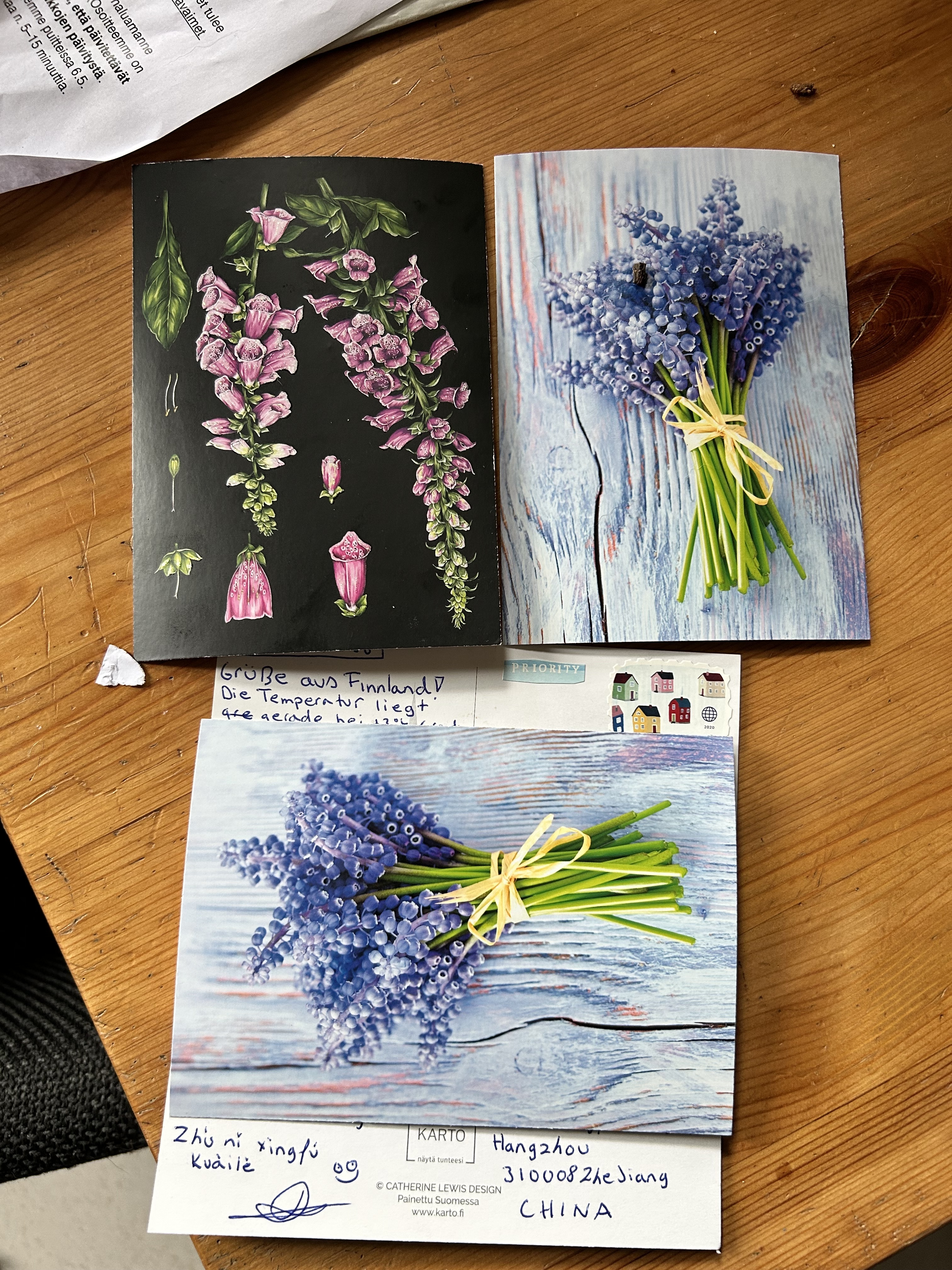 Tänään lähti kortit italiaan, saksaan, viroon, yhdysvaltoihin (arizonaan) ja yksi kortti kiinaan.
